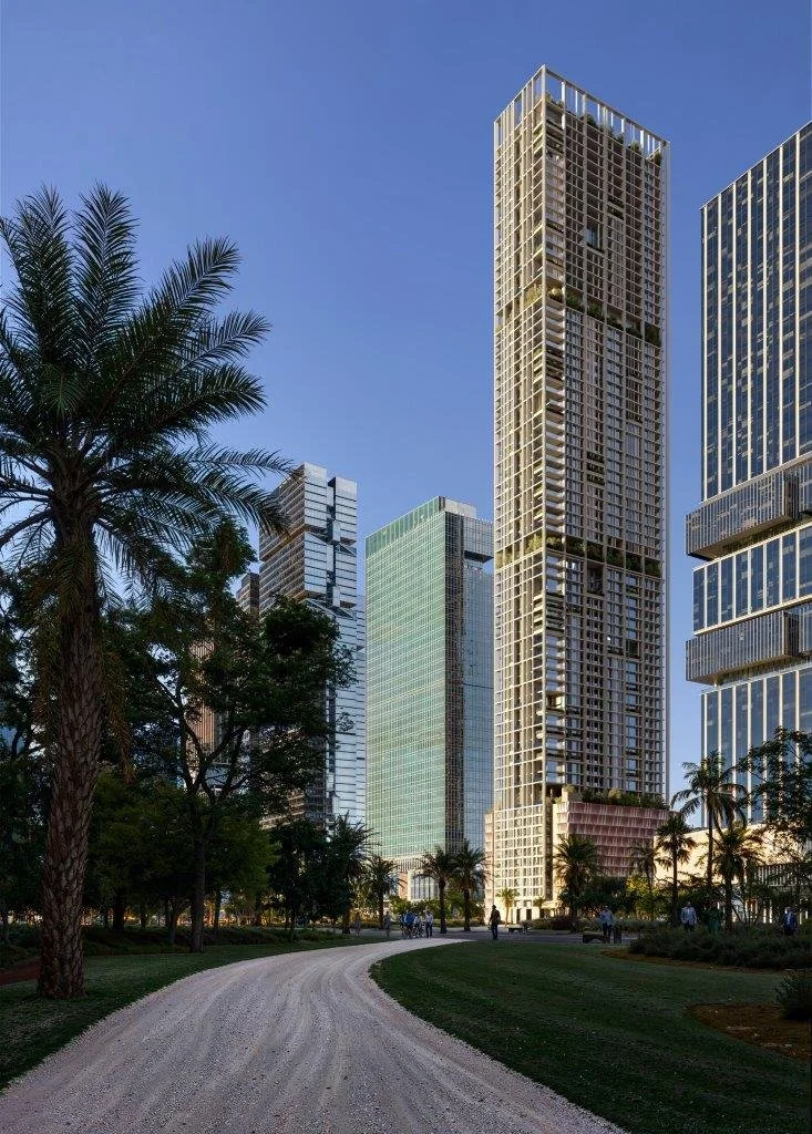 This design features a full-height front façade animated by a layered grid system. While the overall massing remains clean and restrained, the addition of screen elements introduces depth, texture, and a dynamic interplay of light and shadow throughout the day. The MEP floors are designed with double-height volumes, offering unique opportunities to incorporate greenery and garden spaces at those levels, as well as across the rooftop—further enriching the architectural expression and enhancing environmental quality.